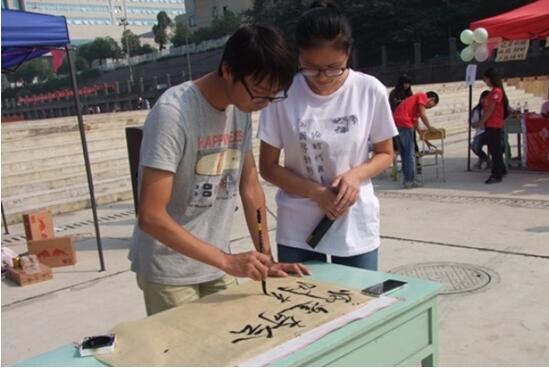 我院创办的十一家社团,其中包括公共关系协会、墨轩书画协会、青草园文学社、极光摄影协会、艺术社、医学社、篮球协会、绿茵足球协会、心理健康协会、跑酷协会和二次元联萌。百团大战这一活动经过了系列的策划,在活动前期,学社联宣传部进行了一系列的宣传工作:下寝发传单、使用微信、qq进行宣传、提前做出百团大战的纸质标志。这使得大一新生对社团有了一定的了解,并踊跃参与了今天的报名活动。在报名开始前,一些社团的报名处就开始排起了长队。