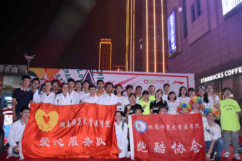 我院的志愿者作为此次活动的工作人员,提前了一个半小时到场,完成了会场布置、落实安全责任、任务点的器材安放等工作。随后,参赛者陆续到达步步高广场并完成签到,在了解规则后签订安全协议书,并领取荧光道具。此次活动由我院跑酷协会的节目劲舞《Boom clap》以及幽默版清宫剧开场,获得了观众的极大反响,关注的掌声与欢呼声不断响起,不少过路群众在旁观看。在活动中,工作人员还负责站在各个交通路口,以保障活动参与者的安全。我院红十字会爱心服务队的同学负责对活动中的伤者进行救治。