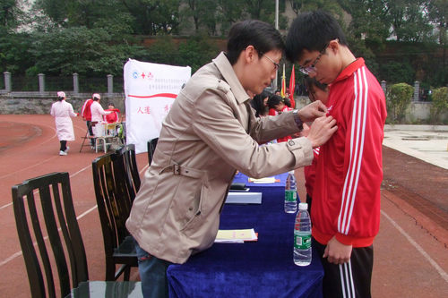 12月3日中午12点半,由我院红十字青年委员会举办的2015级红十字会、青年志愿者协会新会员入会仪式暨表彰大会于中球场举行。长沙市血液中心董恩老师、我院党委副书记谢罗庚老师、学工办张晓红老师、赵燕玲老师、向延娥老师、李强老师、李昕潺老师、文敏老师出席了此次入会仪式。