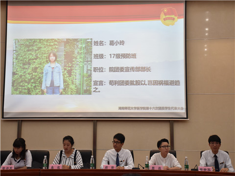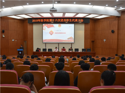 6月8日晚,医学院第十六次团员学生代表大会暨团员青年表彰大会在仁医楼报告厅举行。校团委副书记陈天嵩、院党委副书记谢罗庚出席会议。