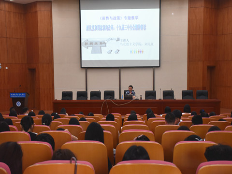 5月24日下午,我院第三次形势与政策课开讲,马克思主义学院副院长刘先江进行了主题为“深化党和国家机构改革:十九届三中全会精神解读”的讲座。