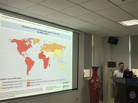 2018年7月26日上午,美国布朗大学医学院唐孝礼博士莅临我校医学院讲学,带来题为“Eliminating HIV/AIDS with novel biologics”的专题讲座。讲座由药学系主任冯星教授主持。
