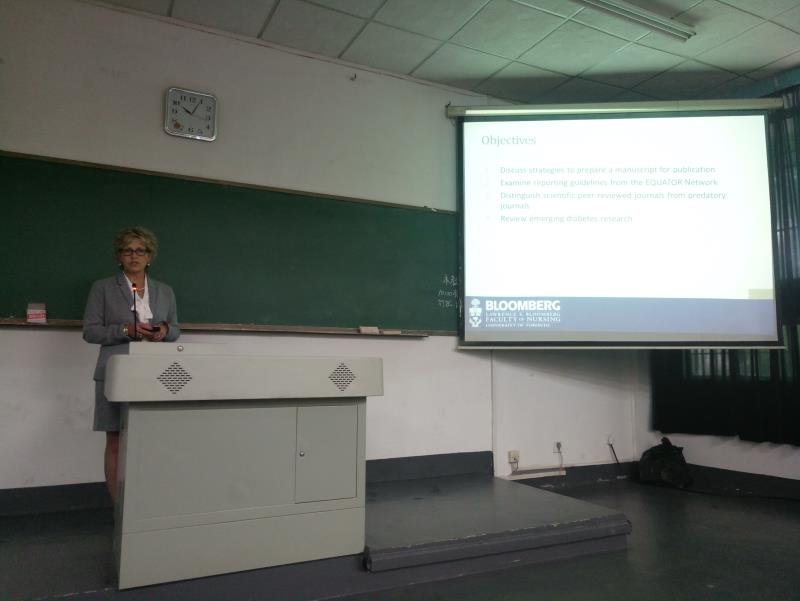 6月18日上午,加拿大多伦多大学护理学院MonicaParry教授莅临我院讲学,带来题为“The Pearls (orPerils)of Writing for Publication”的专题讲座。讲座由我院护理系何彩云教授主持。