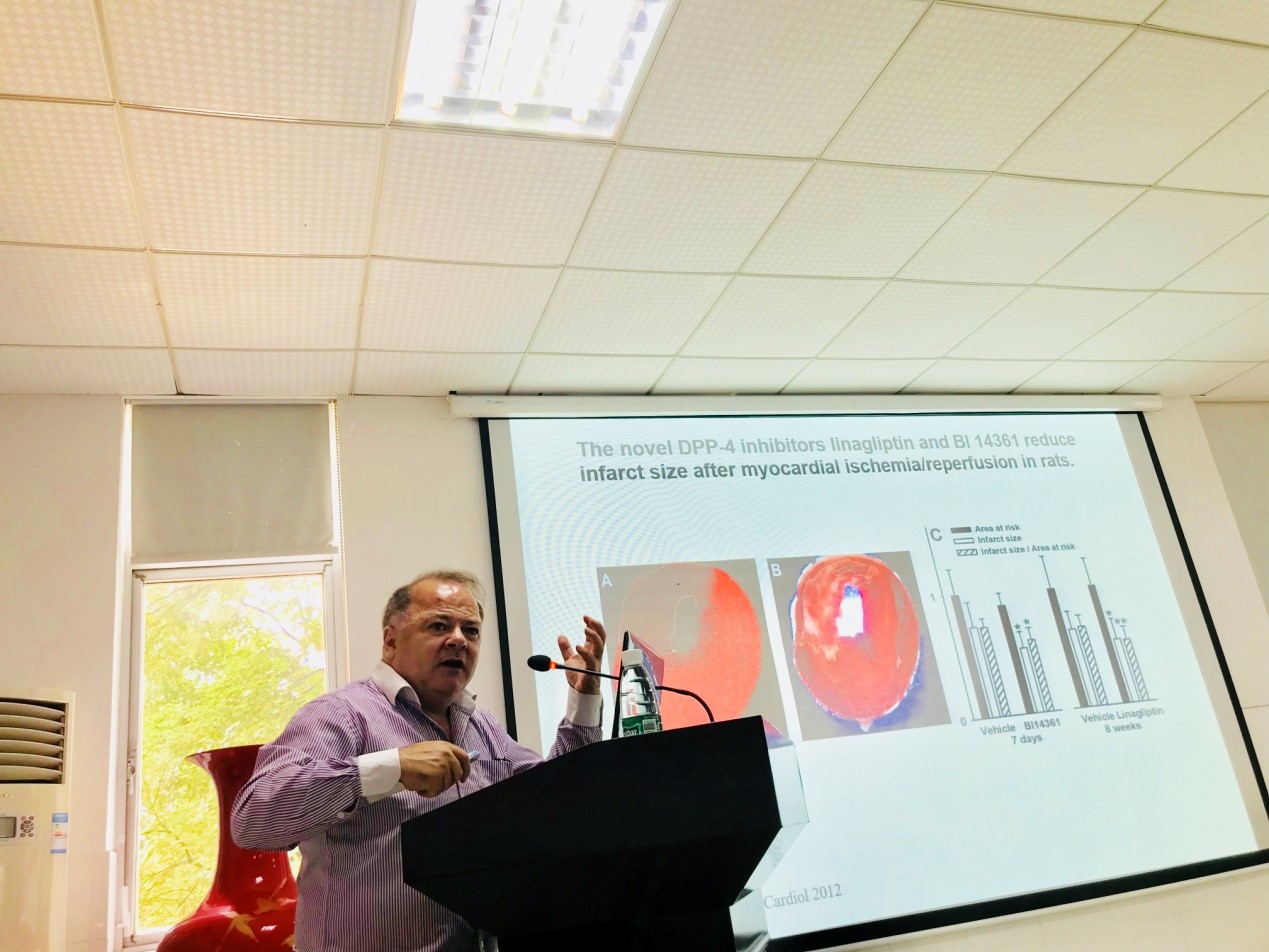 Hocher教授首先介绍了糖尿病肾病的发病机理,其次基于临床数据和实验研究结果着重对比了新的糖尿病药物GLP1受体激动剂、DPP4抑制剂和SGLT2抑制剂治疗糖尿病肾病的作用机制和效果,并重点介绍了Hocher教授本人在此领域开展的国际领先工作。报告内容丰富,互动环节讨论热烈。