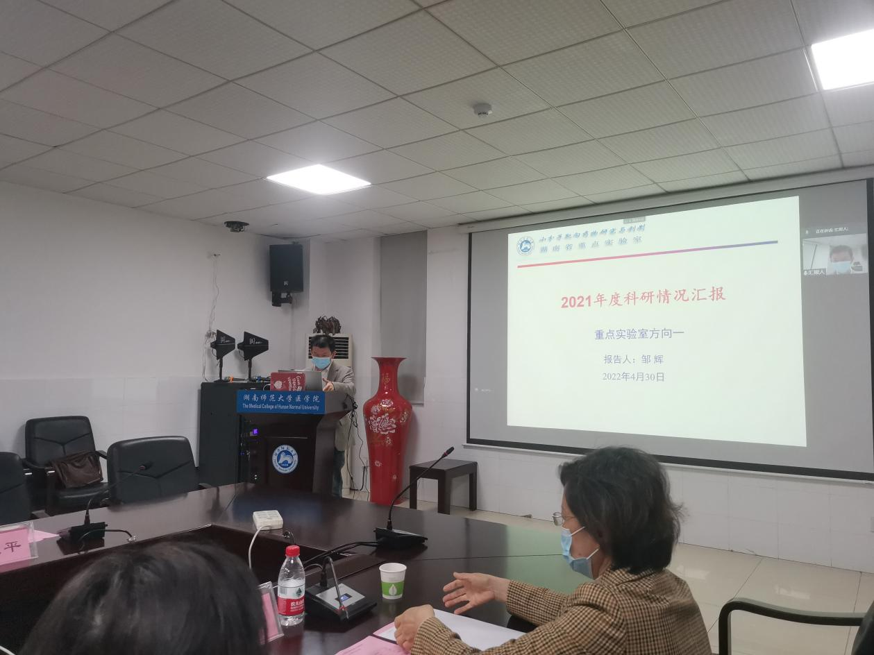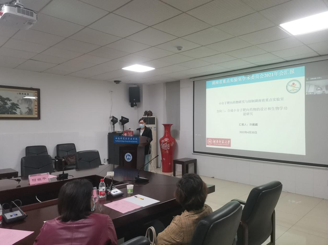 4月30日上午9:30,“小分子靶向药物研究与创制”湖南省重点实验室采取“线上+线下”相结合的方式召开了2021年度学术委员会会议。我校特聘教授、上海交通大学陈丰原教授,国家工程中心主任、南开大学席真教授,国家杰青、北京大学戴志飞教授,国家杰青、中科院昆明动物所陈策实教授,国家杰青、中南大学刘昭前教授及我校符晓华教授出席会议。我校科技处处长马铭、副处长余自娥、校科研平台负责人陶文娜老师莅临线上指导。我校医学院院长何祖平、党委书记鄢朝晖、重点实验室主任杨小平教授及重点实验室骨干成员参加会议。