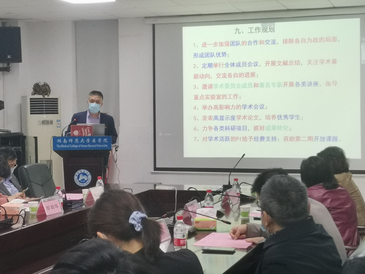最后,科技处马铭处长进行了总结发言,肯定了“小分子靶向药物研究与创制”湖南省重点实验室取得的业绩,并表明科技处将一如既往地关注和支持重点实验室的发展。