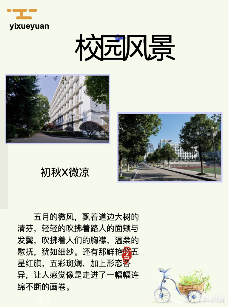 刚才在简介中向大家提到了我们医学院风景秀丽,接下来就带大家来参观一下我们医学院的风景吧。