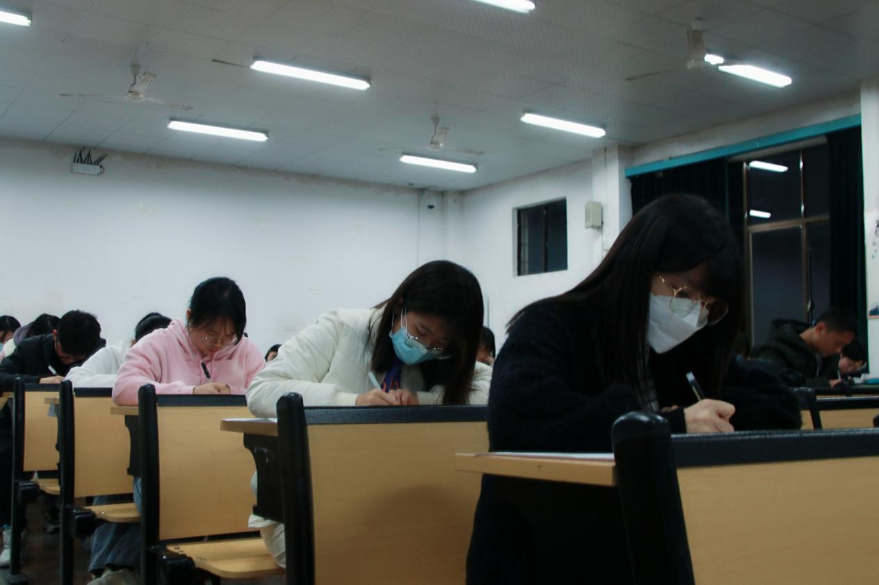 此次知识竞赛为笔试,在考试过程中不得使用手机等电子工具,并且参赛者需要在一个小时内完成试卷。考试时间临近,部门工作人员依次发放试卷到每个同学手中,同学们拿到试卷后便开始答题,监考人员在考场巡视监考。考场上,同学们认真答题。有些同学对知识掌握较为牢固,答题速度较快;有些同学较为细致谨慎,答题不紧不慢,掌握节奏。知识竞赛完成后,同学们陆续交卷离开考场,监考人员进行阅卷并做好成绩登记。