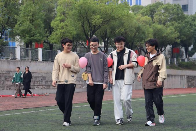 “顶球双运接力赛”同学们四人一组,彼此相互用肩膀夹住气球,体会团队合作的魅力,在每一步中加深彼此的友谊,享受着四人成行的快乐,不仅仅获得了快乐,更重要的是“我们”保证气球不掉下时共同努力的样子。