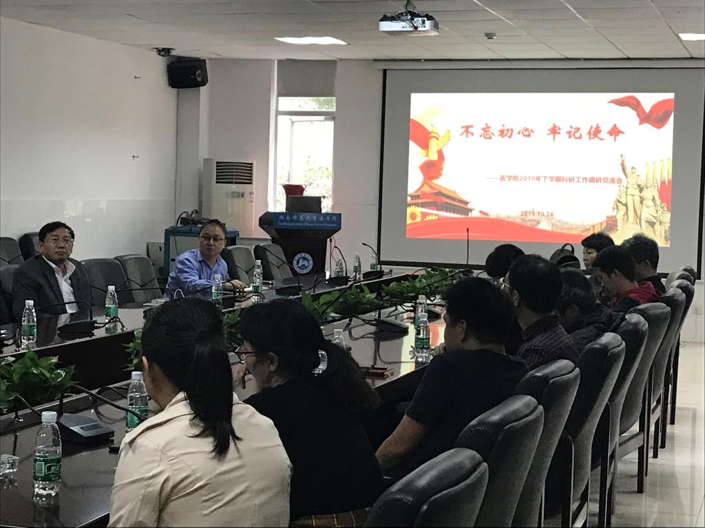 为贯彻 “不忘初心、牢记使命”主题教育的要求,深入调查、研究我院科研工作中存在的问题,10月24日下午,我院召开了2019年下学期科研工作调研座谈会。会议由副院长贺权源主持、院长何祖平、副院长邓文艳出席会议。