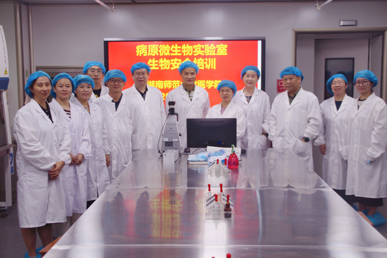 为强化我院病原微生物实验室(P2实验室)的规范和管理,增强师生的生物安全意识以及应对各种生物安全突发情况的处理能力,9月6日,我院举行了病原微生物实验室生物安全培训及演练。院党委书记鄢朝晖、副院长李玉飞、副院长邓文艳及医学检验系和实验中心相关老师参加了培训和演练。