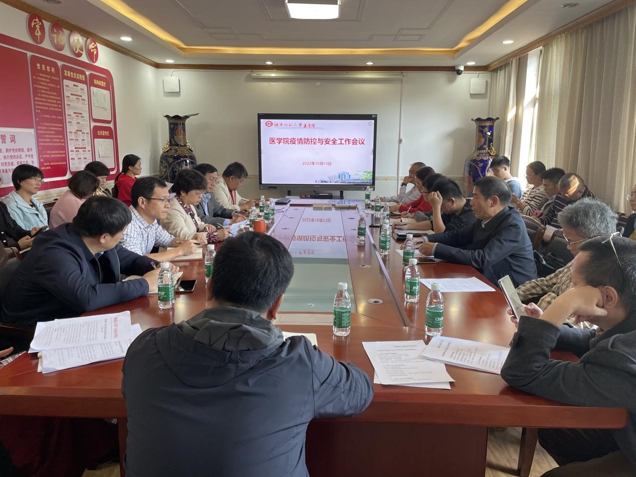 10月13日下午,我院在办公楼四楼会议室召开疫情防控和安全稳定工作会议,对疫情防控和安全稳定有关工作再部署、再推进。我院全体班子成员、系办负责人以及支部书记参加会议。会议由党委书记鄢朝晖主持。