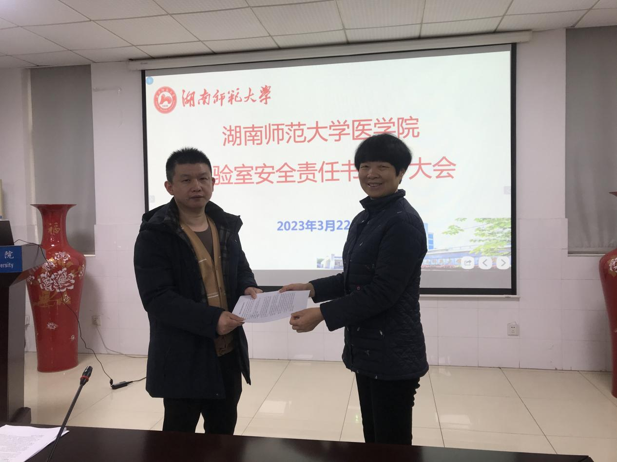 首先,在副院长邓文艳的主持下,各实验室管理人按照“房间到人,责任到人”的原则,分别签订了新年度的安全责任书,各实验室管理人员将责任书转交给中心主任邹辉。