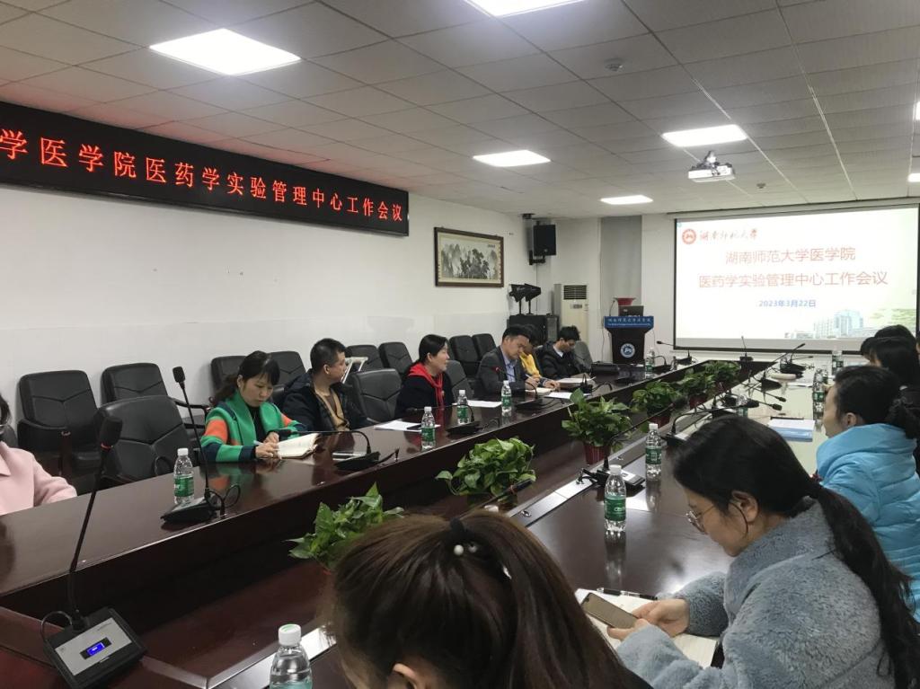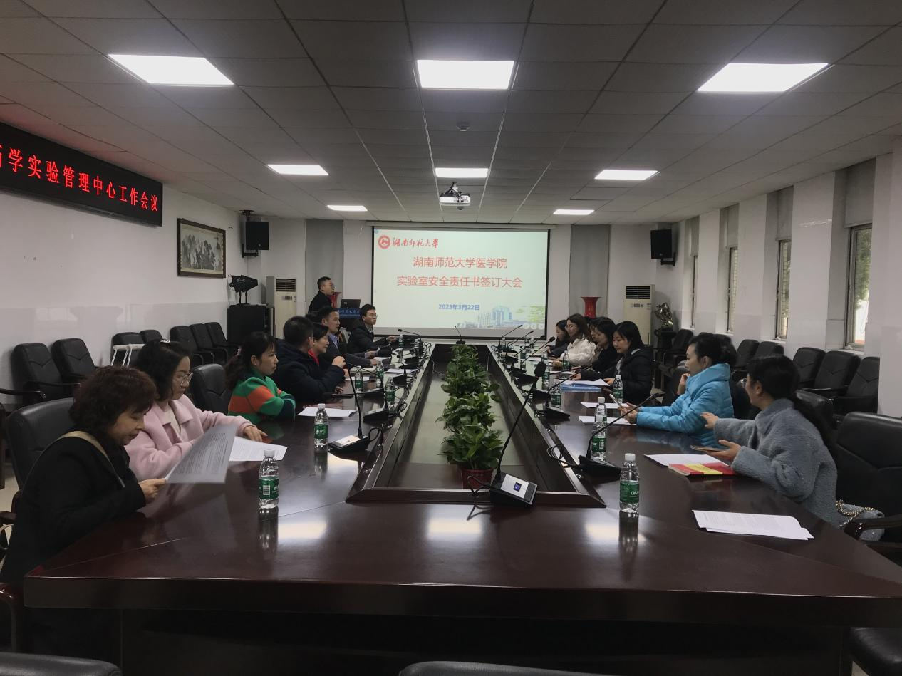 2023年3月22日中午,我院医药学实验管理中心组织召开了本年度新学期中心工作暨安全责任书签订大会。会议由实验中心主任邹辉主持,副院长邓文艳,副主任杨智、任凯群以及中心全体职工参加了会议。