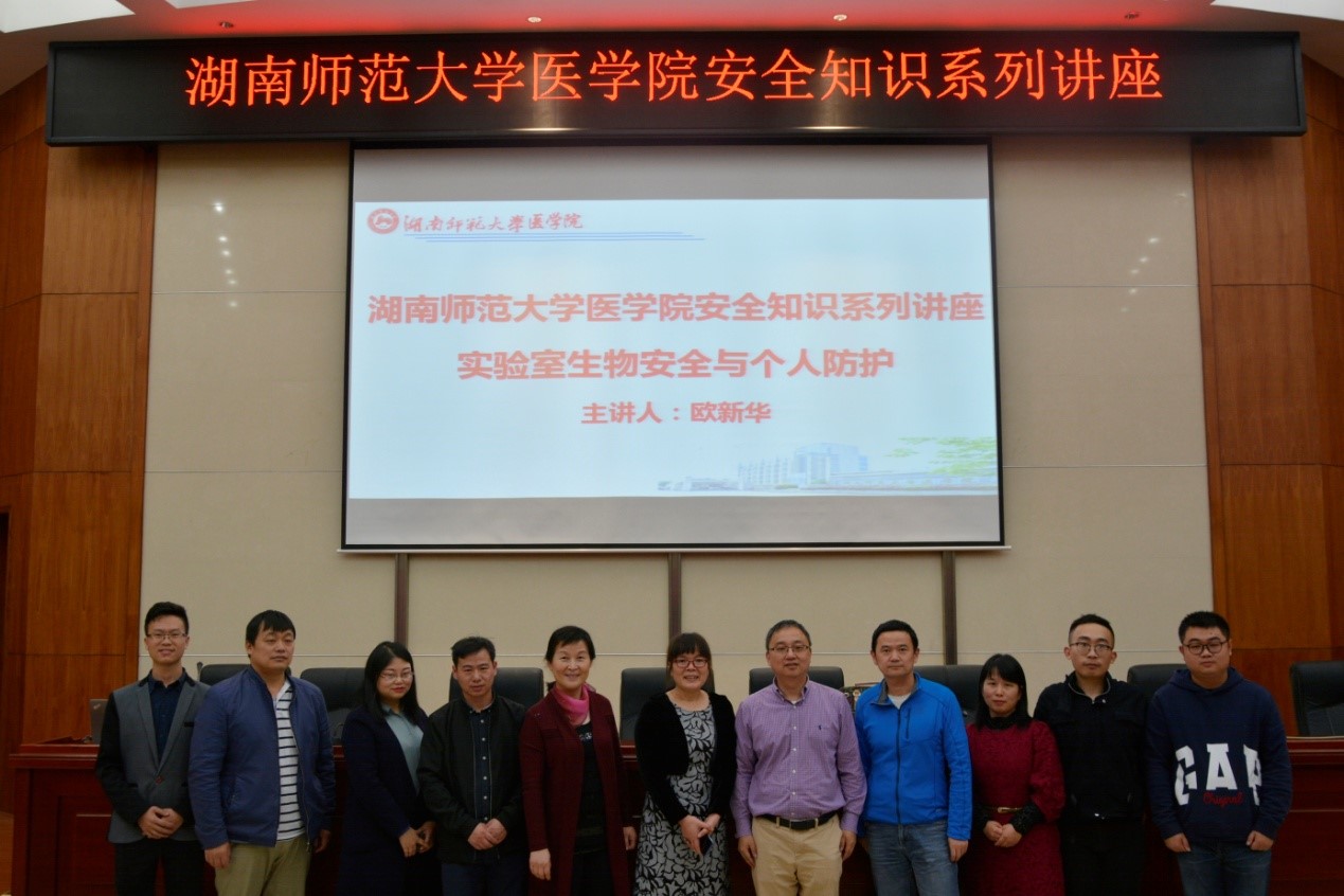 2019年10月30日晚上,根据资产与实验室管理处下发的“安全月”活动安排,我院在仁医楼多功能报告厅举办了主题为“实验室生物安全与个人防护”安全知识系列讲座,长沙市疾控预防中心检验科欧新华主任担任主讲人,副院长贺权源主持讲座。