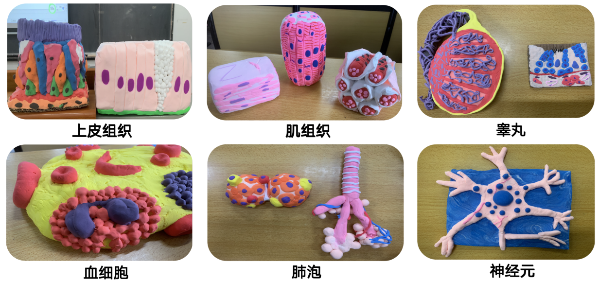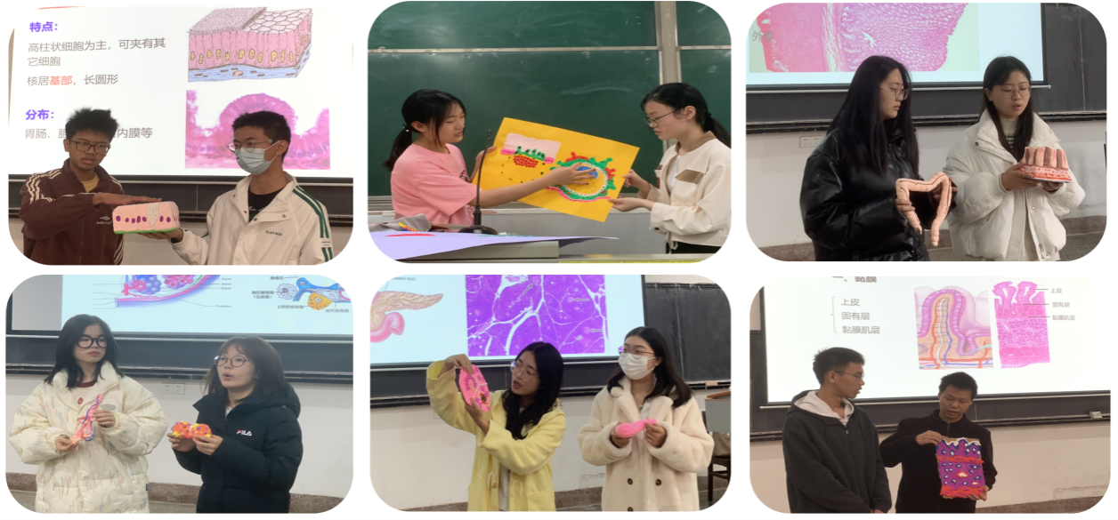 在田玫老师的课堂上,知识不再是枯燥的符号,而是化为学生们深刻的体验。她鼓励同学们使用粘土、泡沫、石膏等制作精美的组织学模型,课中,他们化身小老师,分组进行模型展示和讲解,体验感十足。此外,同学们通过情景剧等方式,进行生生、师生互动,利用肢体语言绘声绘色地模拟组织、细胞形态,既生动又有趣。这些创新实践正是英国365集团推动“基础-临床贯通、学科-交叉融合”教学改革的生动写照。