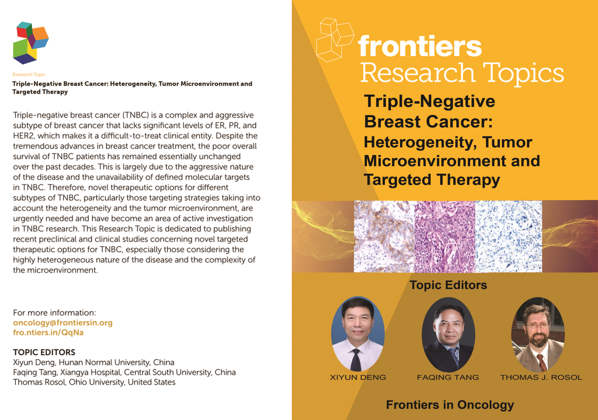 11)Xiyun Deng*, Chanjuan Zheng, Faqing Tang, Thomas J Rosol, Zhi-Ming Shao*. Editorial: Triple-Negative Breast Cancer: Heterogeneity, Tumor Microenvironment and Targeted Therapy.Frontiers in Oncology2022; 12:1026566.