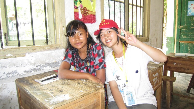 2013年参加暑期社会实践活动支教时和学生合影