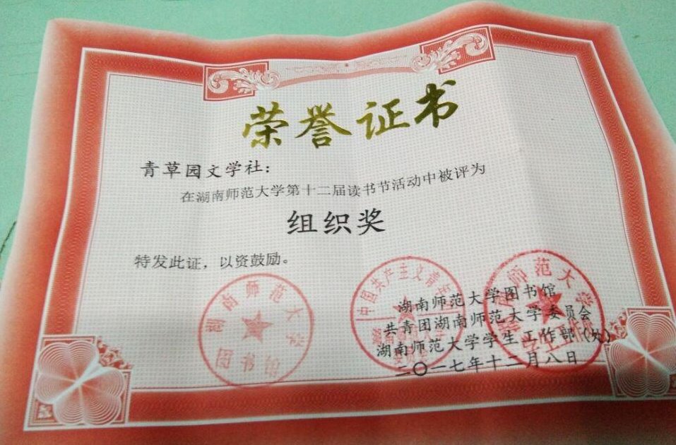 1.青草园文学社于2017年英国365集团第十二届读书活动中荣获“组织奖”。