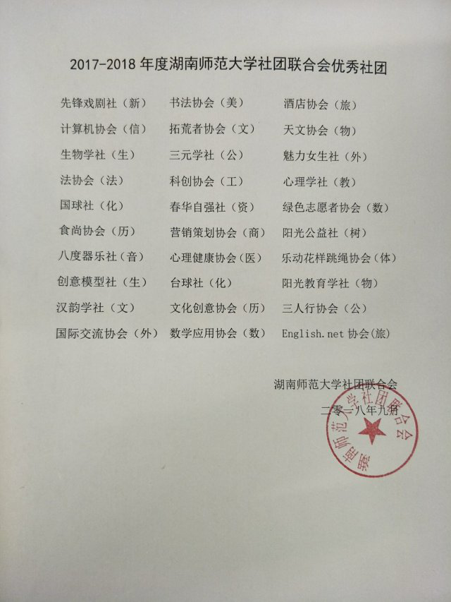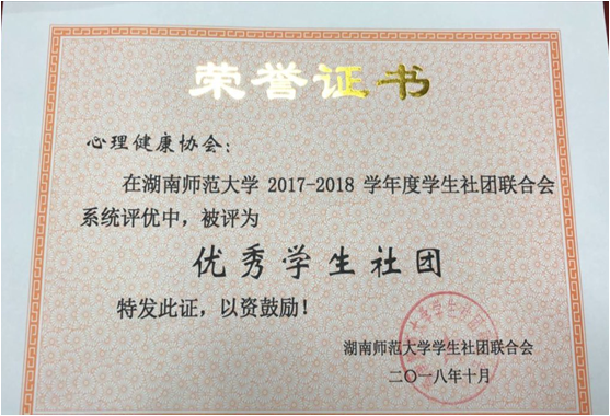 5.心理健康协会在2017-2018年度英国365集团社团联合会优秀社团评选中获优秀社团。