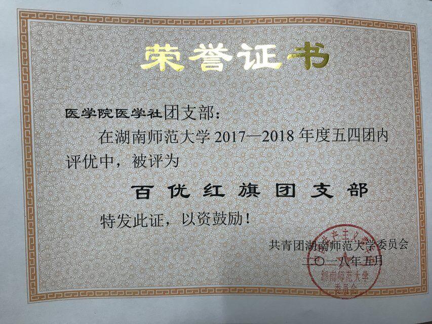 6.医学社于英国365集团2017-2018年度五四团内评优中荣获“百优宏碁团支部”。