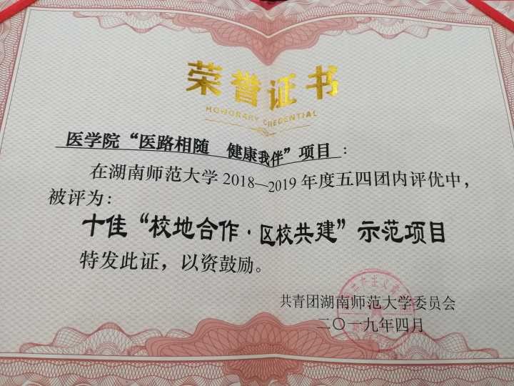 3.青年志愿者工作部获2019年4月获十佳“校地合作·区校共建”示范项目(校级)