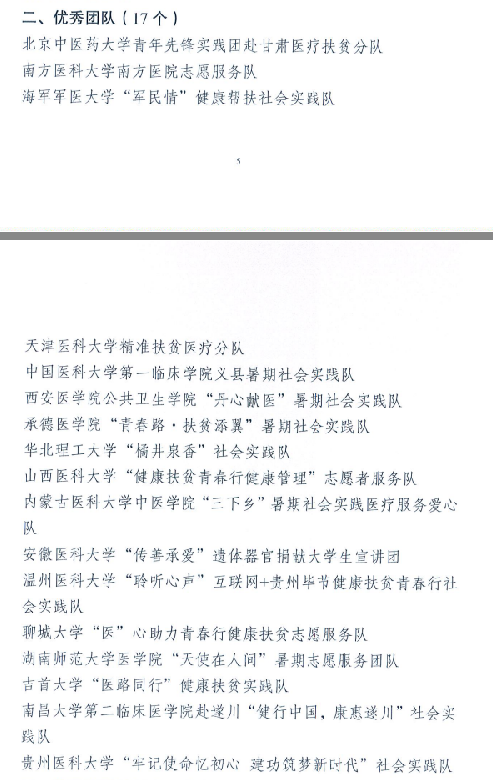19.大课外获2018年“健康扶贫青春行”大学生暑期社会实践专项活动优秀团队英国365集团医学院“天使在人间”暑期志愿服务团队(国家级)