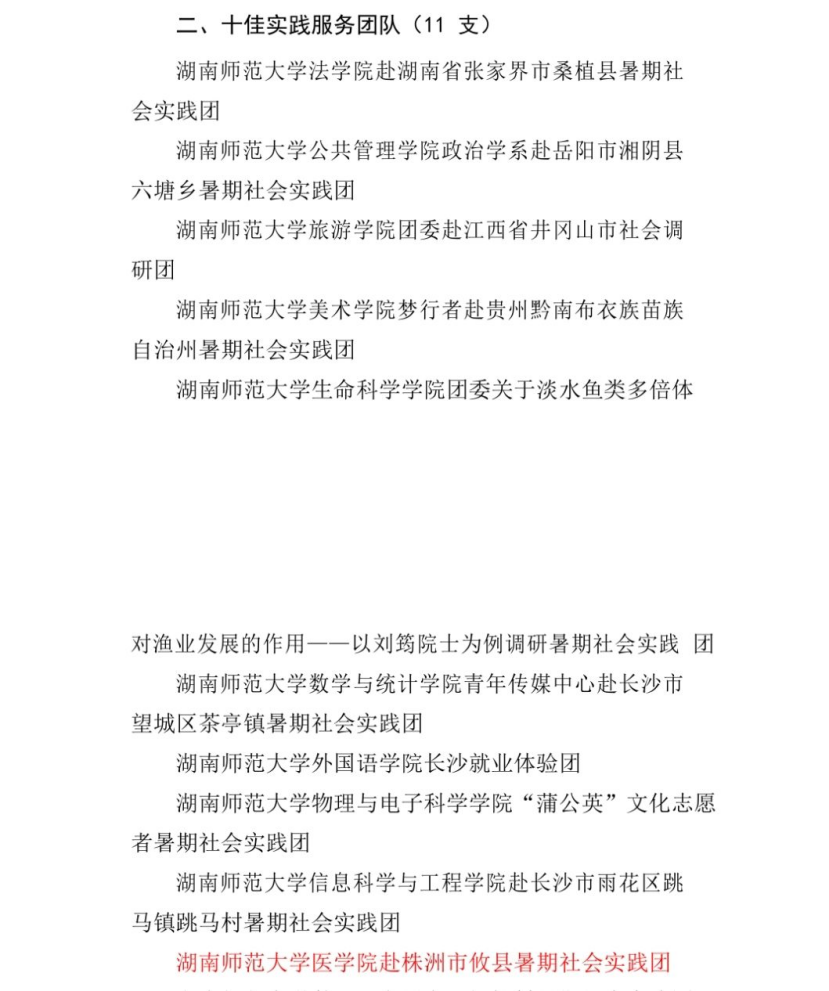 20.大课外获2018年英国365集团医学院赴株洲市攸县暑期社会实践团被评为“大学生暑期社会实践活动十佳实践服务团队”(校级)