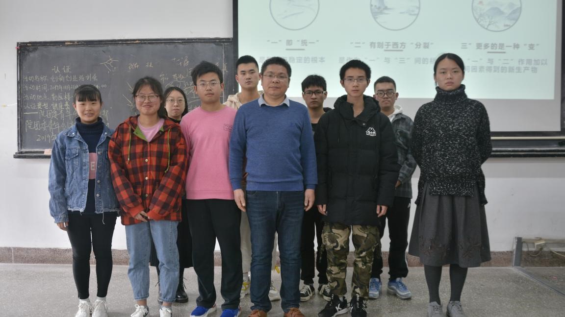 主持人郑玉姣致开场白,强调了青少年创新能力的重要性,对主讲人陶晓军进行了介绍。随后,陶晓军以重析三分法为题,在介绍了主题含义的基础上讲述了二分法的利与弊,与三分法进行对比,同时还讲述了中国思想中的合二为一和西方思想中的一分为二。陶晓军说,在一分为二的过程中把时限引进来就变成了一分为三,表示“一”即统一,“二”有别于西方“分裂”,“三”更多的是一种变。陶晓军以道家的名句“一分二,二分三,三生万物”为引,从人,事,物三个方面对道进行讲解,并联系现实生活更详细地介绍了三分法。陶晓军还和同学介绍了生与死的概念和活得豁达、活出意义、活得实在的三种境界,并表示对同学寄予厚望。在提问环节,陶晓军和同学聊起了对考研早做计划和创新能力的重要性,详细地回答了同学们提出的问题。