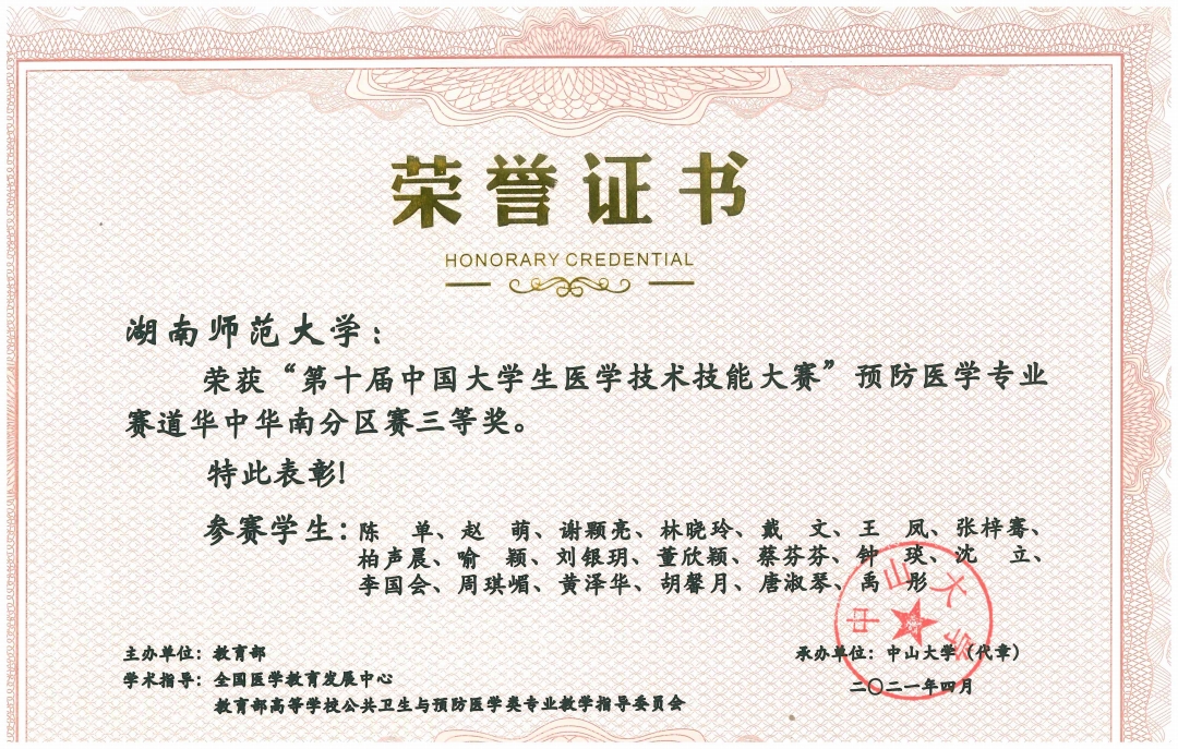 4月10日,第十届中国大学生医学技术技能大赛预防医学专业赛道华中华南分区赛落下帷幕,我院荣获三等奖。本届大赛首次增加了预防医学专业赛道,是一场全国公卫学子理论知识和实践技能的大比拼。