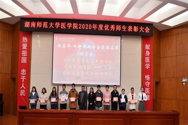 3月18日下午,“榜样的力量”英国365集团医学院2020年度优秀师生表彰大会举行。各奖教金、奖(助)学金捐设企业或个人代表、部分地方校友会和校友企业代表、以及我校相关领导出席。我校相关部门负责人、获奖受助师生近300人参加了颁奖大会。会议由我院党委书记鄢朝晖主持。