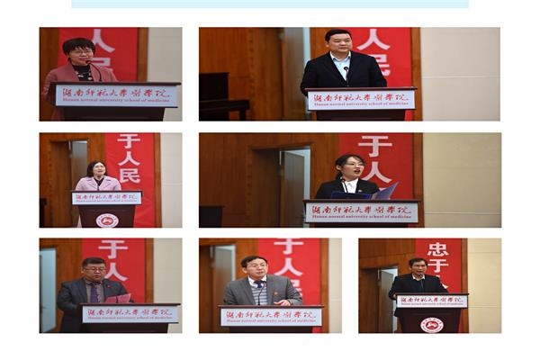 我院院长何祖平教授在仪式上致辞。他代表我校向长期以来关心和支持我校教育事业发展的爱心企业和爱心校友表示衷心感谢,向获得表彰的师生表示祝贺。他首先简要介绍了我院办学历史与近年来取得办学成果。他希望在全院师生中强化榜样力量,让榜样精神激励全院师生与时俱进,敢为人先,追求卓越,再创辉煌。他衷心感谢无私奉献、鼎力支持我院发展的广大校友们,并恳请各位校友为母校的医学教育发展谏言献策、鼎力相助号召全院教师以赤诚之心、奉献之心、仁爱之心投身教育事业;鼓励全院学生向榜样学习,争做习近平总书记希望的“爱国、励志、求真、力行”的新时代大学生。