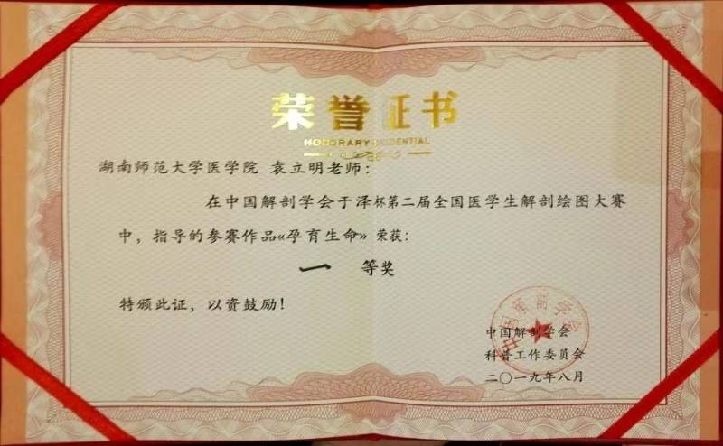 我院基础医学实验中心袁立明主任、邓光祁老师带领解剖学实践创新团队部分成员参加本次大会,我院杜铭萱《孕育生命》获中国解剖学会于泽杯第二届全国医学生解剖绘图大赛一等奖、谭昭《实物标本写生—十二对脑神经及颈外动脉标本》获三等奖;陈良禹以《浅谈医学生视角对解剖学虚拟仿真实验平台的探索及创新》为题在虚拟仿真分会场作大会报告,获专家好评。