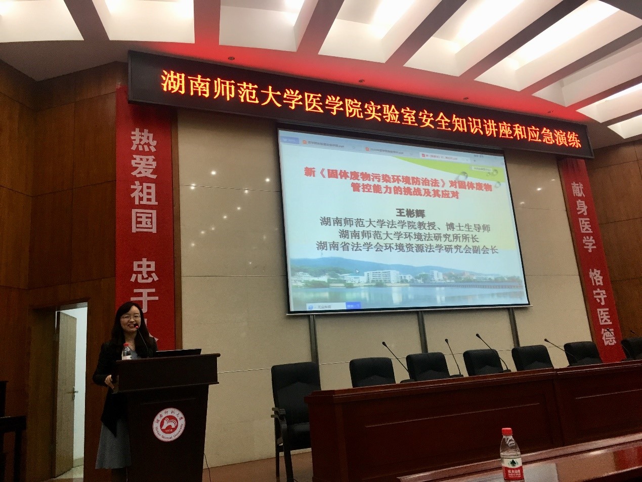 11月19日下午,我院在仁医楼学术报告厅举行新《中华人民共和国固体废物污染环境防治法》的专题知识学习讲座。讲座由法学院环境法研究所所长王彬辉教授主讲,我院党委书记鄢朝晖主持。
