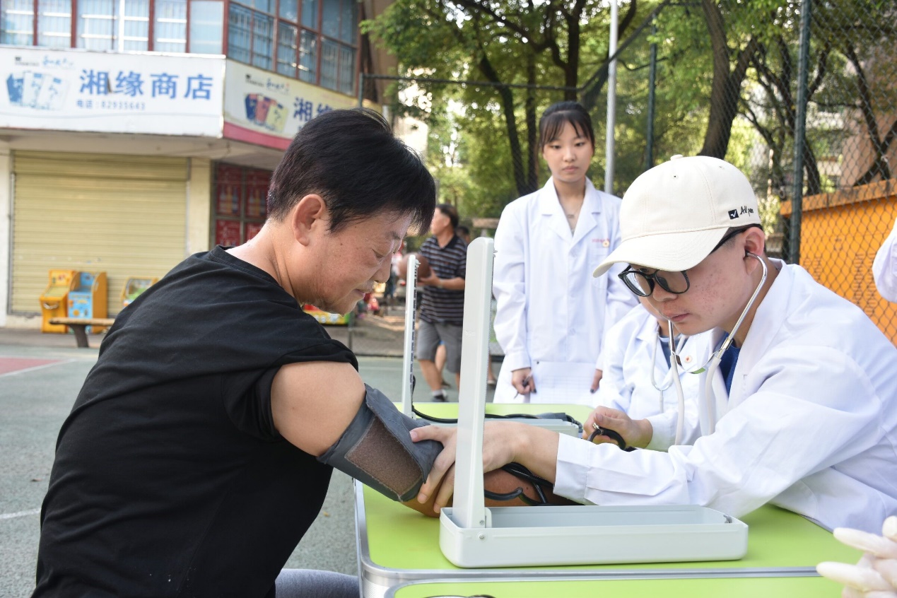 7月16日上午,我院红十字会社会实践团共同前往长沙市岳麓区湘仪家园为附近居民测量血压、血糖,并提供健康咨询。