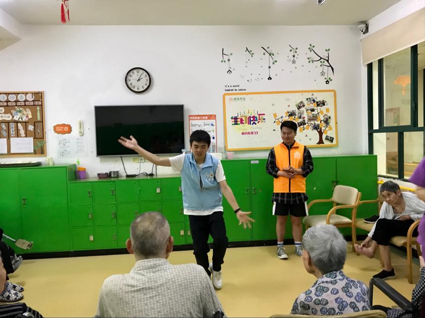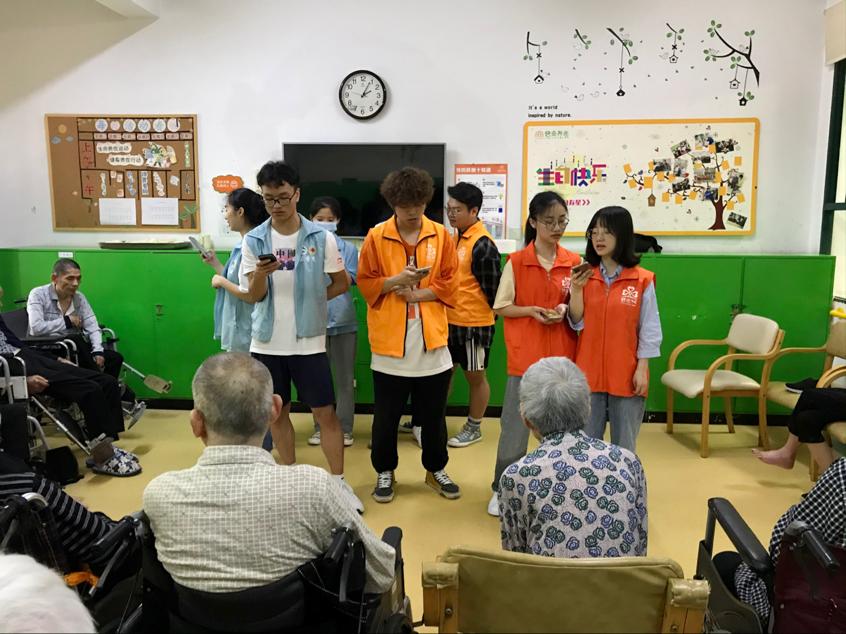活动开始时,主持人朱思颖致开场白并代表我院志愿者对老人们致以诚挚的问候。紧接着,我院志愿者们一起为老人们献唱经典老歌,当唱到《好一朵美丽的茉莉花》时,老人们都沉醉于美妙的歌声中,情不自禁地一起合唱起来。随后,志愿者兰涅为老人们表演了《二十四式太极拳》。节目最后,老人们纷纷鼓掌叫好,现场气氛活跃了起来。此外,志愿者还与老人们逐个交谈,询问近期的饮食和作息情况,并协助养老院护理人员的工作。