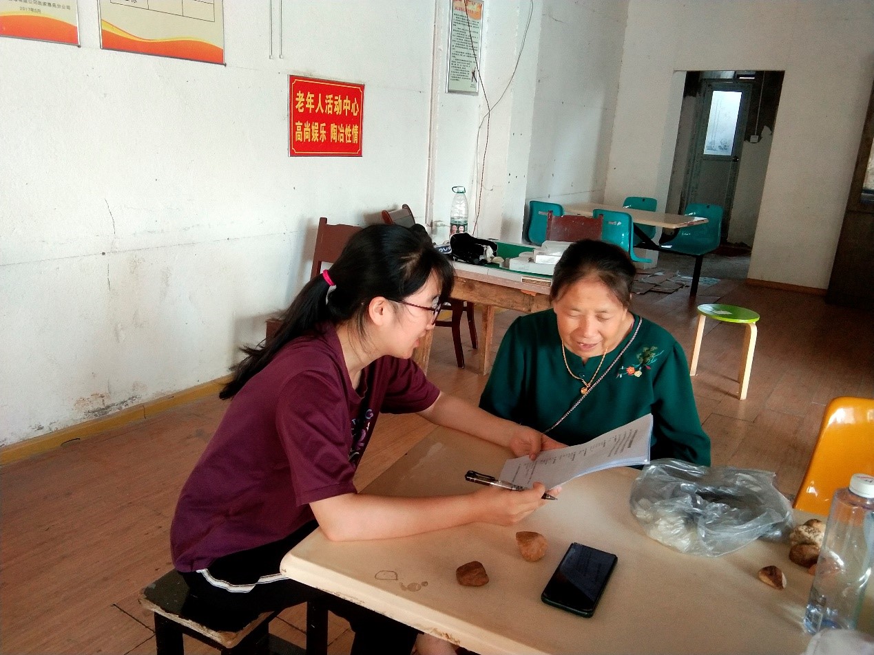 测完血压血糖的居民,在实践团调研组成员的引导下,到旁边的桌子上填写开放“三胎”政策的调查问卷。调查过程中,调研组成员与居民进行交流,询问他们对于计划生育政策的相关看法与提议,并做好详细记录,保存问卷。