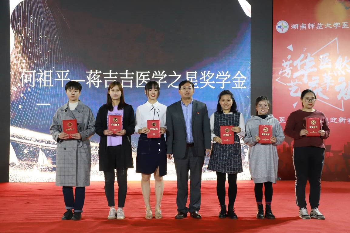 随后,院长何祖平宣读表彰决定。刘令安校友代表汉森集团财务总监宋杰群、汉森集团行政主管张璇琦、谈发金校友代表湖南康寿制药有限公司总经理助理王志峰、杨勇军校友代表省儿童医院副主任药师田静、院长何祖平、刘习明校友代表长沙宁儿妇产医院执行院长郭红、校友长沙市隆康医疗器械有限公司总经理向延明依次上台为获奖学生与集体颁奖,给获奖学子送上亲切的关怀和美好的祝愿,并合影留念。