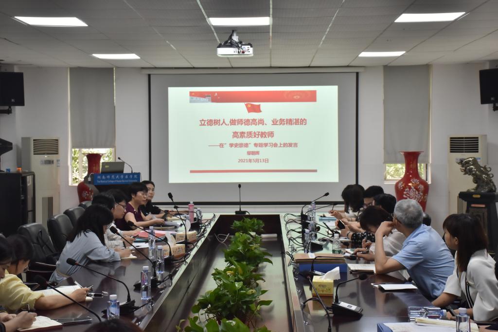 5月13日下午,我院党委组织党史学习教育第三次专题学习研讨会——“学史崇德”专题学习研讨会暨党支部书记学习培训会议。会议由党委书记鄢朝晖主持,全体支部书记、支委参加学习。