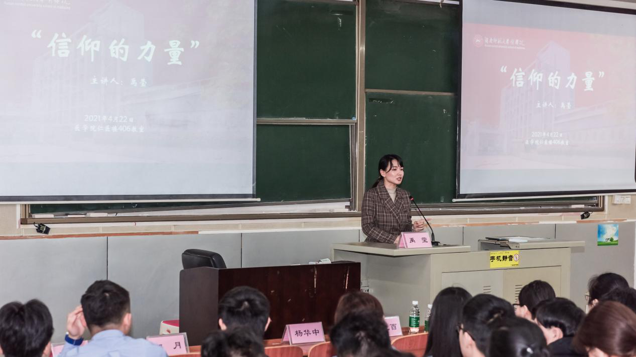 4月22日下午,我院于仁医楼406开展“信仰的力量”讲座,我校优秀校友、“抗击新冠肺炎疫情全国三八红旗手”禹莹为主讲人,树达学院副院长黄元国主持本次讲座。