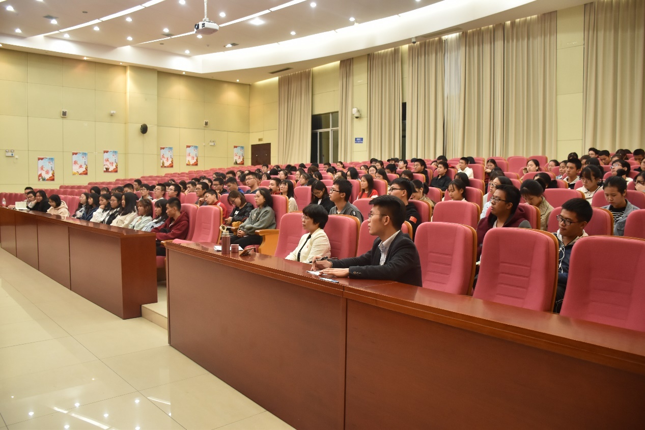 10月25日晚七点半,我院在仁医楼学术报告厅举办庆祝中华人民共和国成立70周年主题讲座,宣传部副部长蔡颂应邀主讲“新丝路·新故事:——把‘一带一路’铺进新时代湖湘青年心中”,院党委书记鄢朝晖出席此次讲座,团委书记(代)张明明主持讲座。