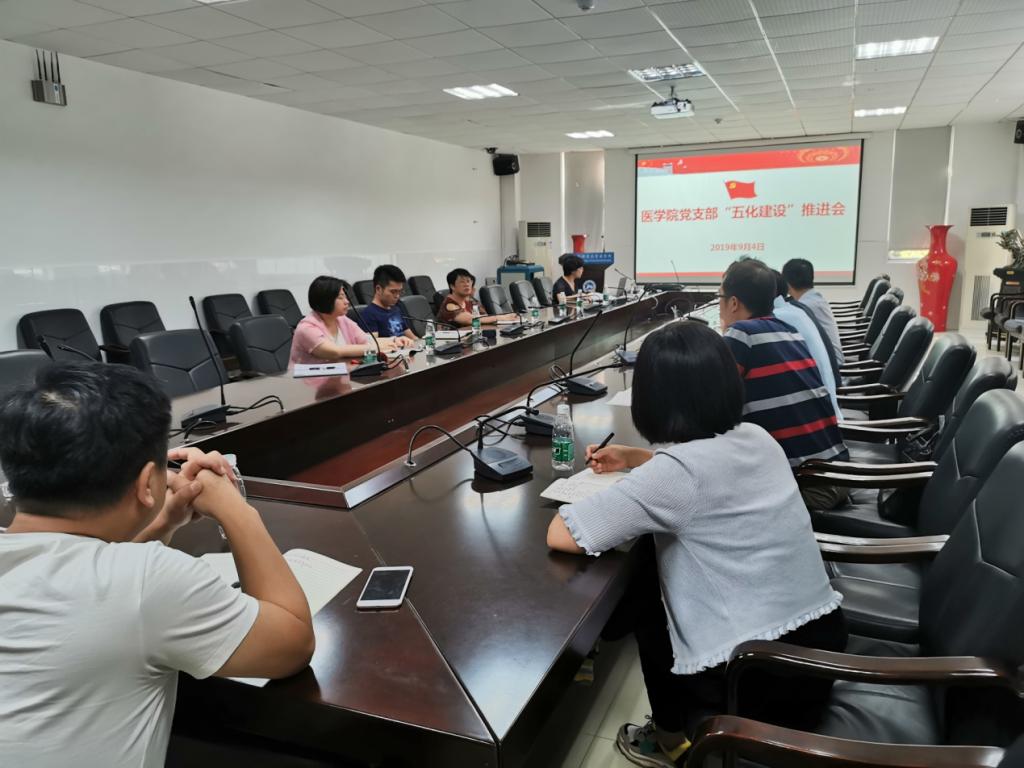 2019年9月5日下午,我院党委召开本学期第一次支部书记大会暨医学院“五化建设”推进会,全体教工支部和本科生支部书记参加了会议,会议由党委书记鄢朝晖主持。