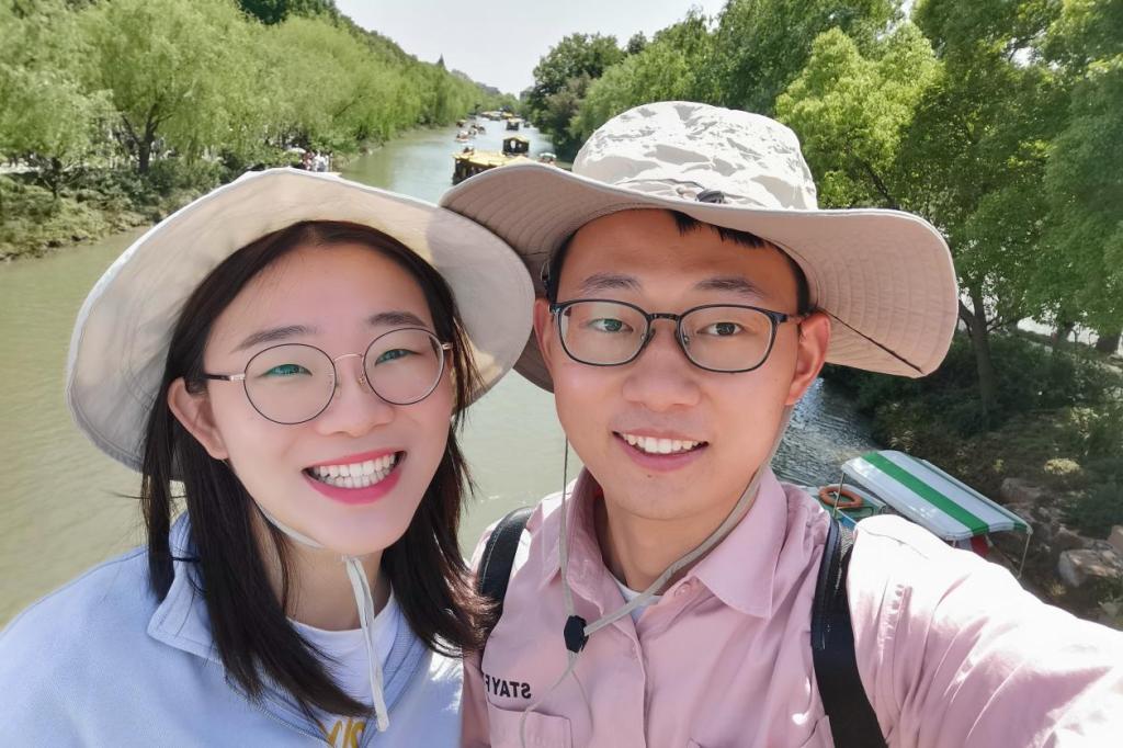 廖楚庭回忆:“我与仰智璇是在2018年一起担任18级临一班学生班导的时候认识的。在一起共事的时候发现彼此身上还是有很多闪光点和吸引自己的地方,在军训快要结束的时候感觉她是对的人了,然后就走在了一起。”路旁林荫郁郁葱葱,蝉儿齐声鸣唱。在这最美的季节,最美的地方,遇见了最美的彼此。