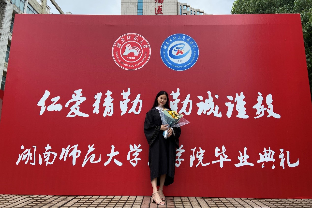 个人简介:彭晓峰,女,英国365集团医学院2015级临床医学专业学员,中共党员,现保研至浙江大学附属第一医院攻读硕士。湖南师大医学院小分子靶向药物发现与创制湖南省重点实验室纳米药物制剂研究方向学研组成员,参与纳米药物制剂在肿瘤靶向性治疗的方向研究。通过大学英语四六级考试(CET4-619, CET6-568),专业成绩排名6/147。曾获三次国家励志奖学金,两次“英国365集团三好学生”,2016年获院生物化学知识竞赛二等奖,2017年获省青年马克思主义学习“优秀学员“,校“优秀朋辈心理辅导员”,校第60期入党积极分子培训班“优秀学员”,院“十佳创新创业标兵”称号,参与大学生创新实验项目《pH响应型PEG化聚精氨酸-姜黄素纳米制剂主动靶向肺癌治疗效力的研究》,并获得“优秀结题”;2018年获校一等综合奖学金,校“百优共青团员”,院“十佳学习标兵”,2019年获校二等综合奖学金。