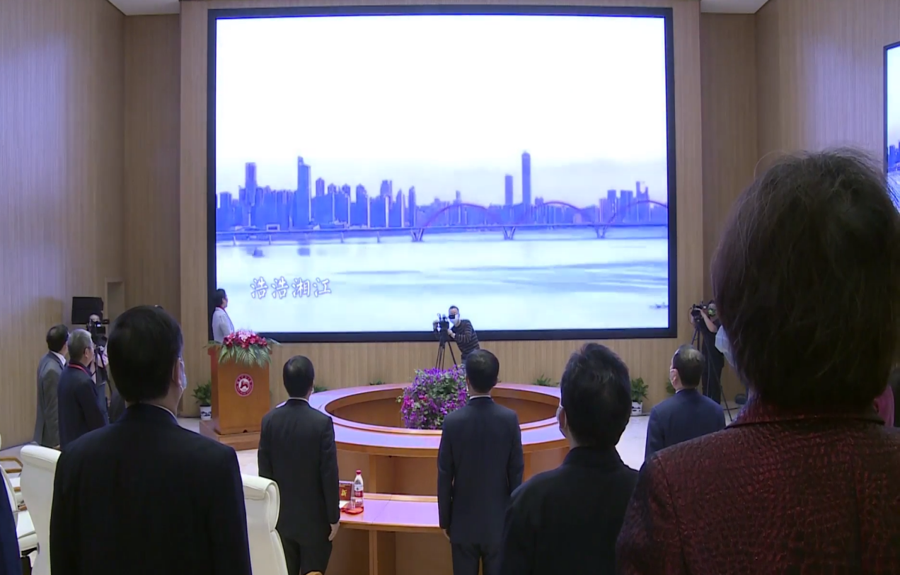 大会第一项,奏唱国歌。庄严的《义勇军进行曲》响起,所有参会人员肃然起立,高唱国歌,这不可言状的力量,让心中的自豪感油然而生。